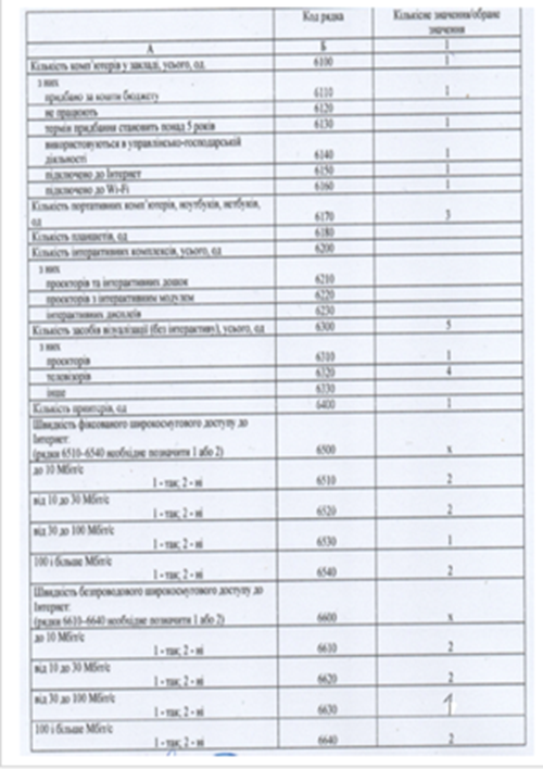 Педагогічний колектив забезпечений необхідною комп'ютерною технікою та стабільним доступом до Інтернету для безперебійного проведення занять. Використовуються рекомендовані Міністерством освіти і науки України цифрові платформи ( Google Meet, Viber, ) для проведення онлайн-занять, консультацій та комунікації з батьками.