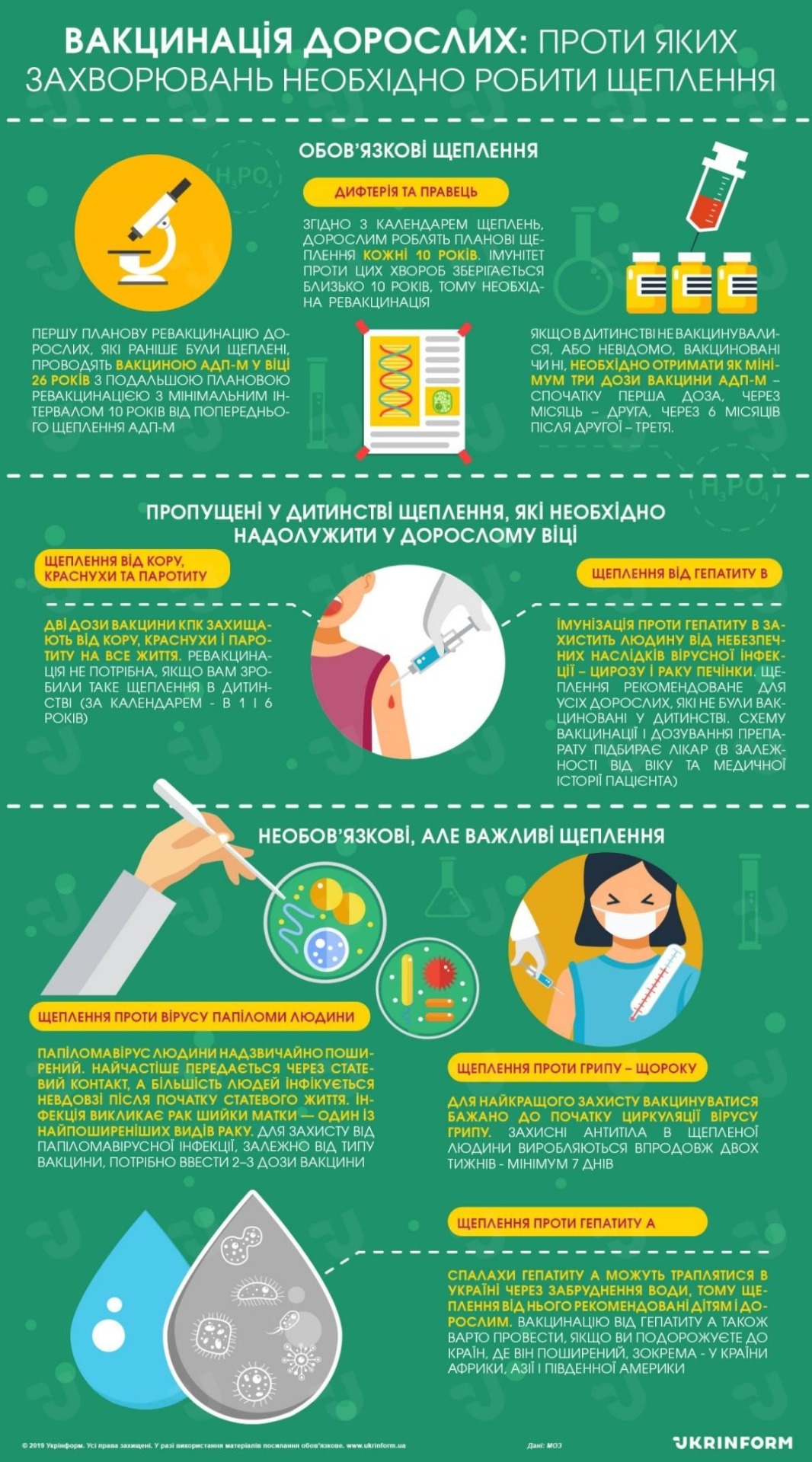 *Вітряна віспа – дві дози, щоб уникнути хвороби та оперізувального герпесу в майбутньому.